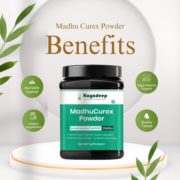 MadhuCurex Powder by Kayadeep is formulated to support individuals looking for a natural approach to sugar balance management. Inspired by traditional Ayurvedic wisdom, this supplement works gently with the body to promote metabolic efficiency and sustained energy levels.